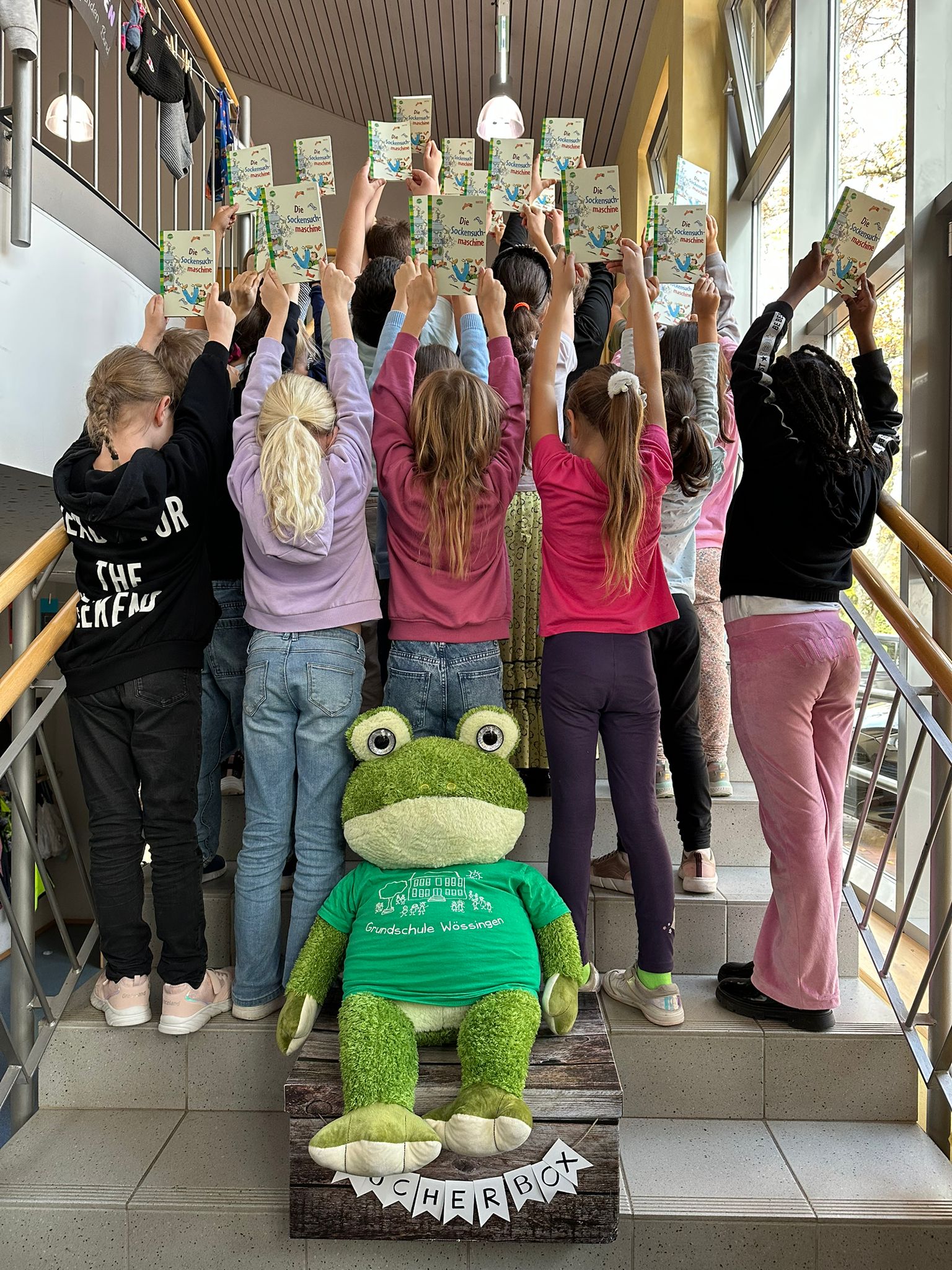Pünktlich zur Frederikwoche überreichten Fr. Brendel und Fr. Stöckle den Kindern der zweiten Klasse die Klassenlektüre „Die Sockensuchmaschine“.